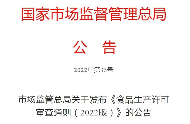 11月1日實(shí)施!總局發(fā)布《食品生產(chǎn)許可審查通則(2022版)》