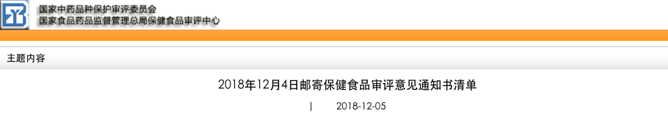 中保委郵寄保健食品審評(píng)意見(jiàn)通知書清單(2018年12月4日)