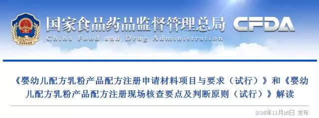 根據(jù)《中華人民共和國(guó)食品安全法》、《嬰幼兒配方乳粉產(chǎn)品配方注冊(cè)管理辦法》等法律法規(guī),食品藥品監(jiān)管總局組織起草了《申請(qǐng)材料項(xiàng)目與要求》和《現(xiàn)場(chǎng)核查要點(diǎn)及判斷原則》,于2016年8月9日至9月10日公開(kāi)征求社會(huì)意見(jiàn),經(jīng)反復(fù)討論修改完善后,于10月29日發(fā)布。
